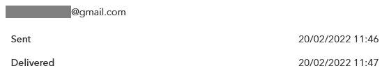 For each email you can see the time when it was sent and when it was delivered to the recipient.